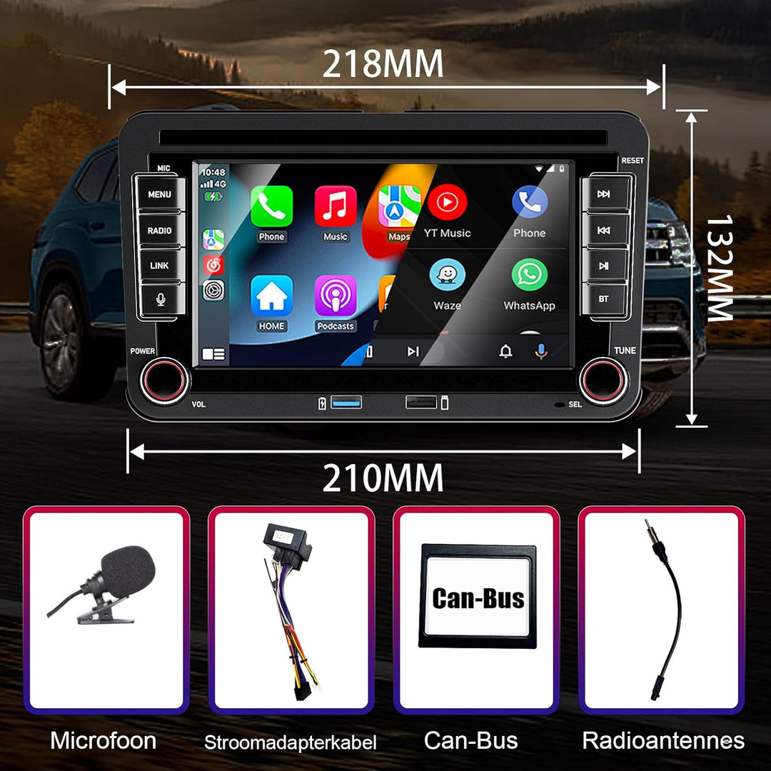 - 🚘【Geeignet für VW Radio】 Dieses apple carplay radio ist für folgende Volkswagen-Modelle geeignet: Caddy, Jetta, Golf, Polo, Passat, Altea, Toledo, Octavia, Skoda und Seat. Bitte überprüfen Sie die Abmessungen (220 mm x 130 mm) vor dem Kauf.