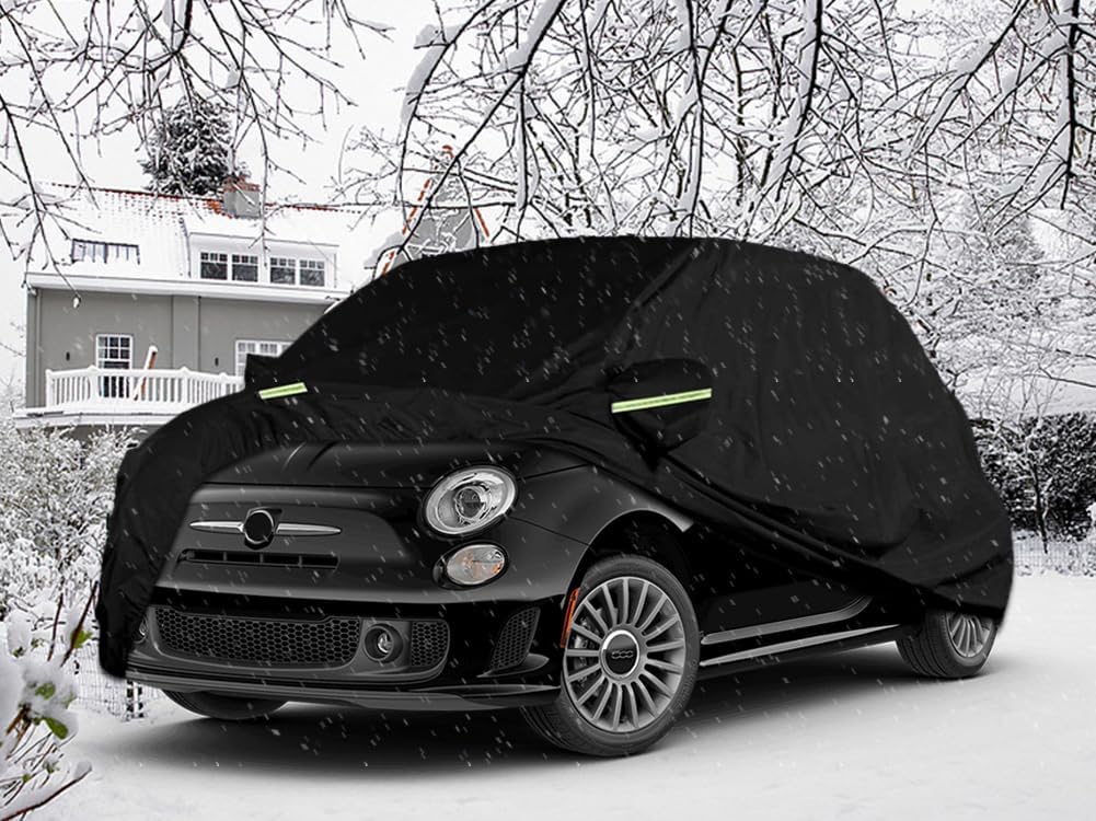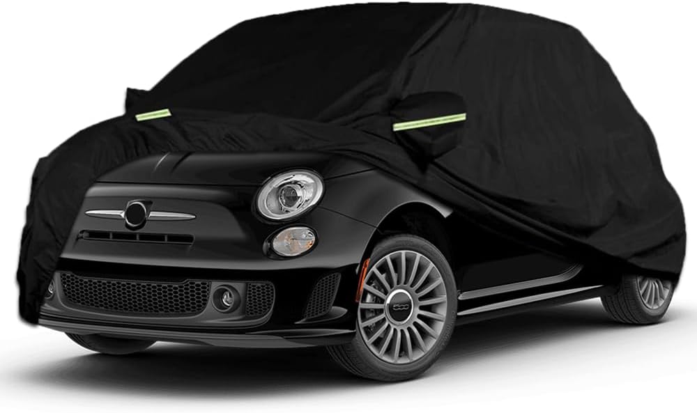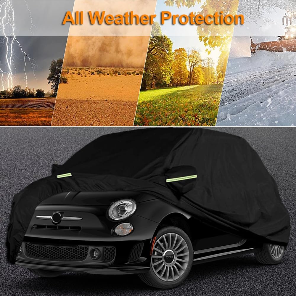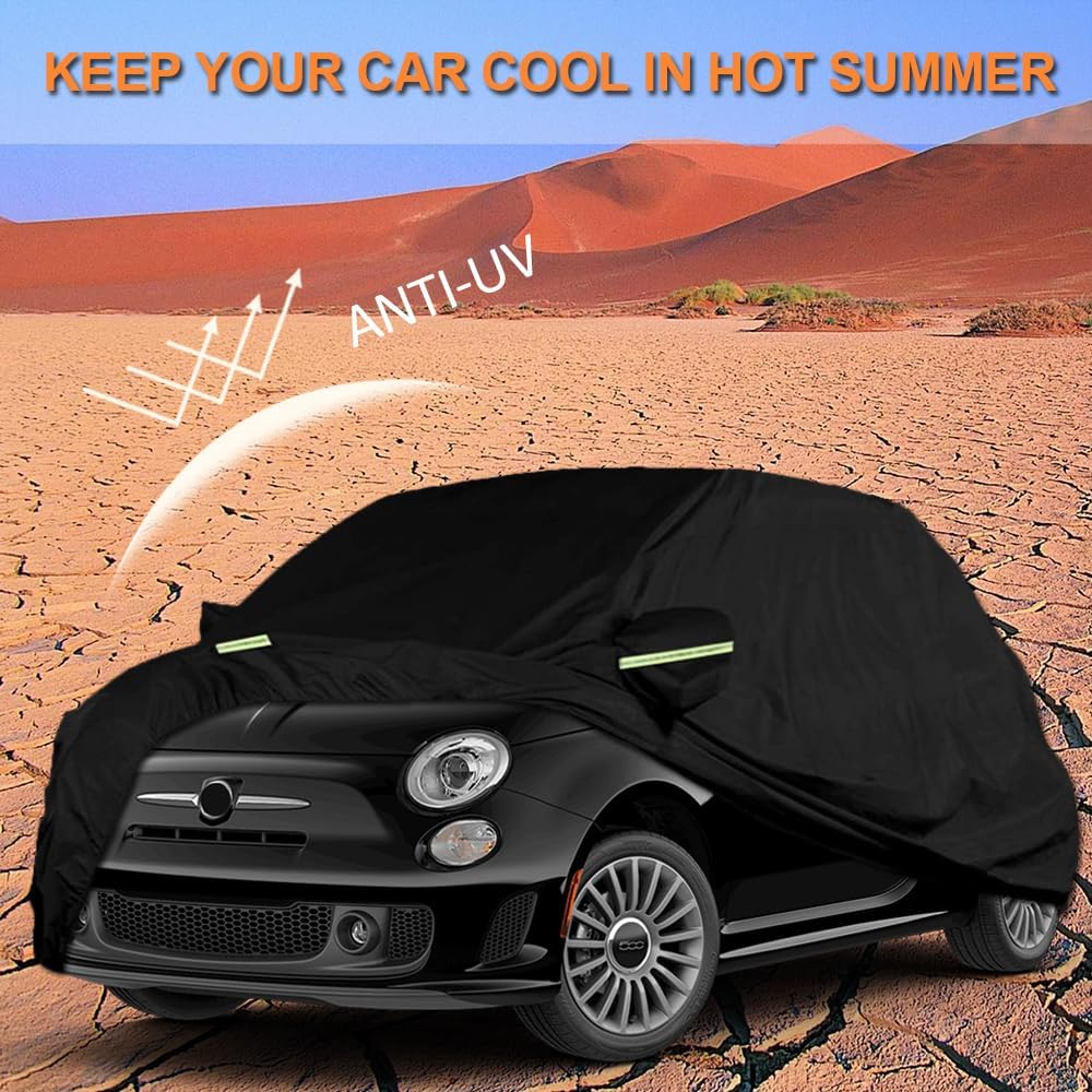 - 【Passgenau】 Die wasserdichte Autoabdeckung wurde speziell für die Kompatibilität mit Fiat 500/500C/500E/Abarth 500 von 2007-2024 entwickelt. Sie müssen Ihr Automodell überprüfen, bevor Sie eine Bestellung aufgeben.