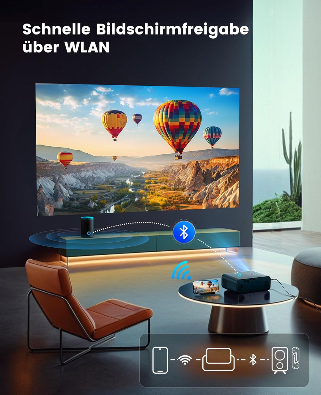 - 🛒【WiFi6 & Bluetooth Video Beamer】WiMiUS P62 Beamer verwendet die neueste WiFi6 Technologie, eine höhere Übertragungsrate und eine geringere Latenz als 5G, einige Sekunden werden drahtlos synchronisiert, um einen grossen Bildschirm zu erhalten. Kein zusätzlicher Adapter erforderlich. Eingebauter Bluetooth 5.0 Chip, der Beamer ermöglicht es, jederzeit den idealen Bluetooth Lautsprecher/Kopfhörer anzuschliessen und jeden Detail Soundeffekt zu speichern, um Ihnen verschiedene Soundszenen zu bieten