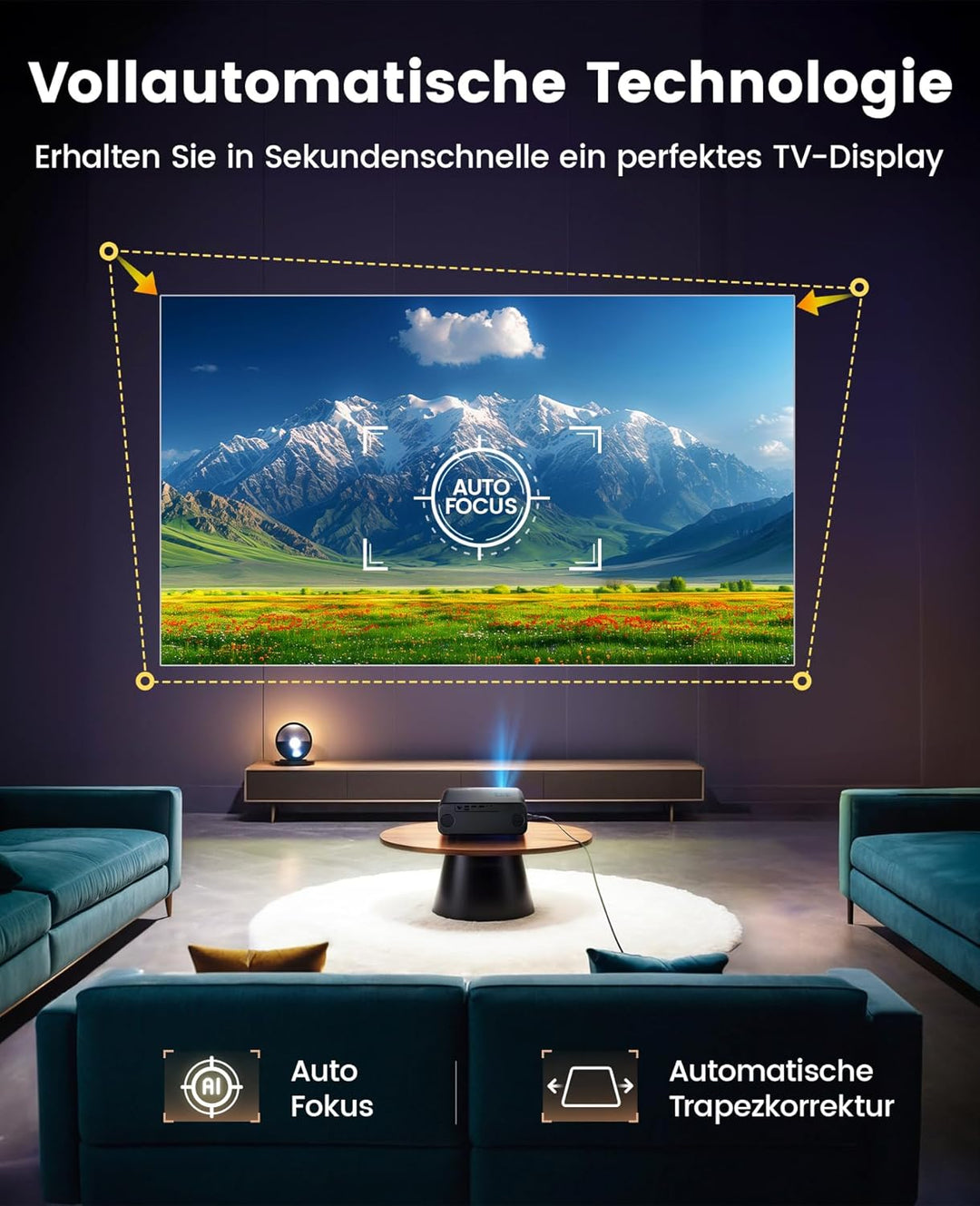 - 🛒【Innovativer Autofokus & Trapezkorrektur】Der P62 Beamer verfügt über die Autofokus und Trapezkorrektur technologie, einen integrierten hochpräzisen Sensor, erkennt Bewegungen in Echtzeit und fokussiert schneller und genauer. Ein paar Sekunden zeigen das stabile und klare Bild nach dem Booten der Beamer. Der Trapezkorrektur Chip und die Camera Intelligent arbeiten zusammen und korrigieren automatisch das rechteckige Bild, wenn die Seitenprojektion und der Neigungswinkel 20°nicht überschreiten.