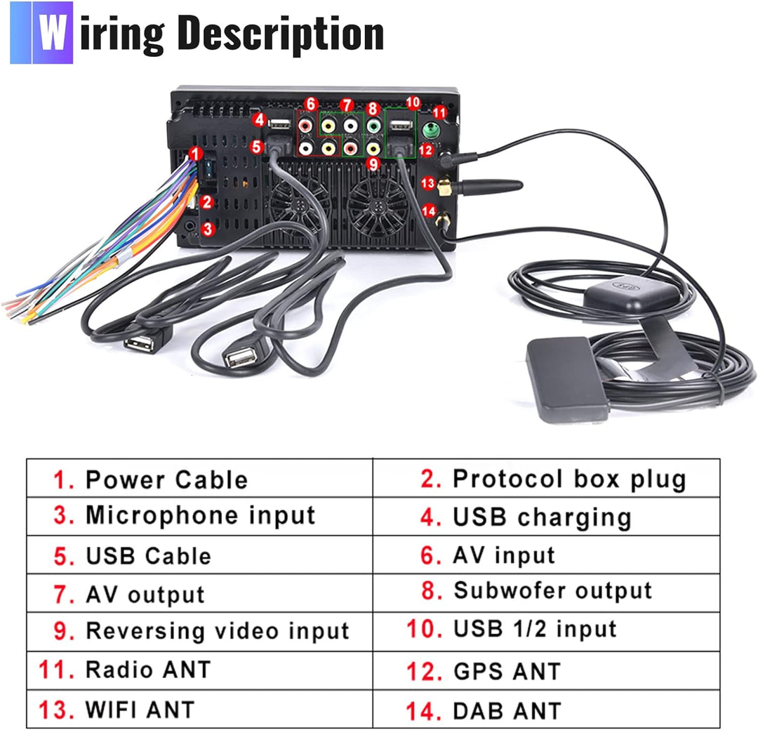 - 【Auto-Multimedia-Player Mehr Funktion】 6 USB-Anschlüsse: Telefone aufladen oder Daten übertragen. Rückfahrkamera inklusive: 150° Weitwinkel 12 LEDs Nachtsicht und IP68 wasserdicht. Lenkradsteuerung: Zwei Key/SW-Kabel für die analoge Lenkradsteuerung. Split-Screen-Funktion: Eine Browserseite + eine Dateiseite. Video-/Audioausgang: 4 x 45 W Audioausgang/RCA-Videoausgang