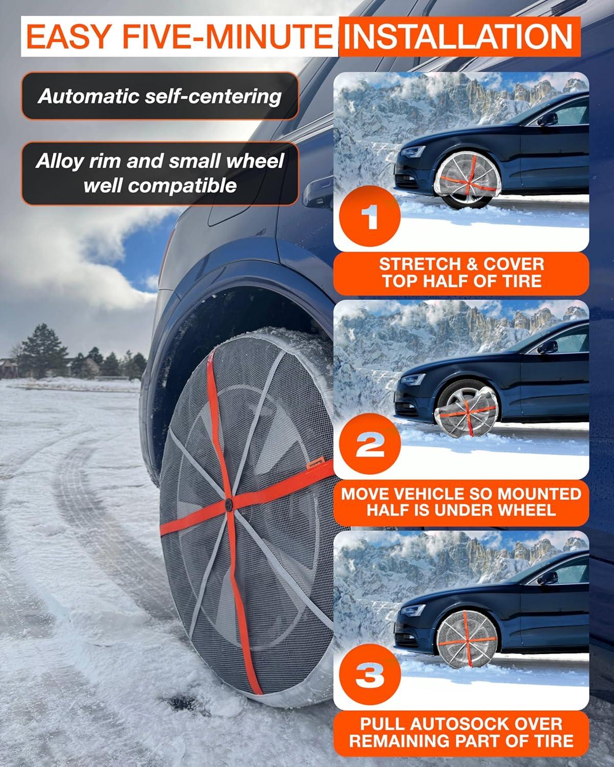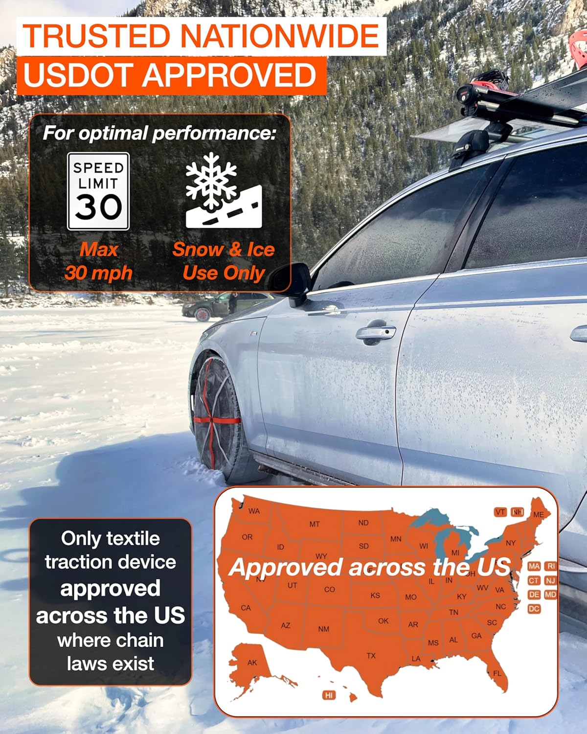 - Einzigartiger Grip auf Schnee und Eis! Die textile Traktionshilfe! ÖNorm V5121 und TÜV SÜD geprüft! Eine perfekte kurzfristige Winterhilfe für Fahrzeuge! Schnell und einfach auf- und abzuziehen!Freigeprüft vom TÜV SÜD und führenden Fahrzeugherstellern!
