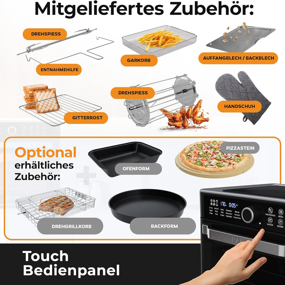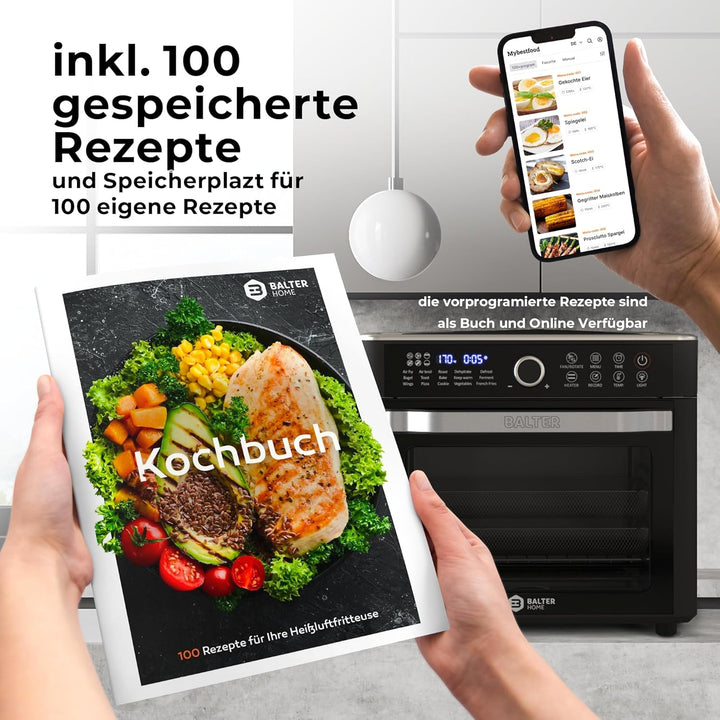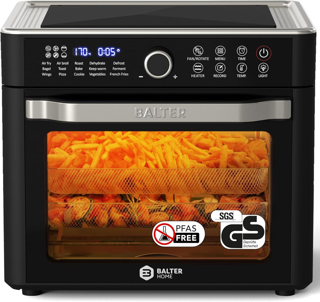 - MULTIFUNKTIONAL 16in1 - Entfesseln Sie Ihre kulinarische Kreativität mit der Balter Heissluftfritteuse HL-2200! Ob Fritteuse, Minibackofen mit Umluft, Dörrgerät oder mehr – dieses vielseitige Gerät bietet Ihnen unendliche Möglichkeiten in Ihrer