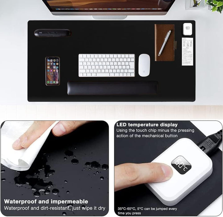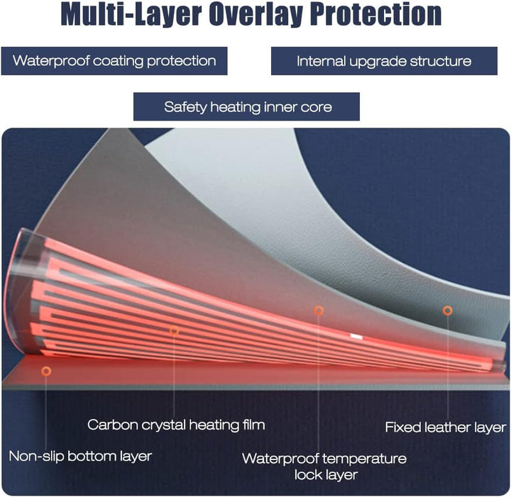 - Hohe Qualität - Dieses Beheizte Schreibtischunterlage ist aus PU-Leder, rundum wasserdicht, undurchlässig und schmutzabweisend, es gibt kein Sicherheitsproblem, Sie können es mit Vertrauen verwenden. Dieses beheizbare Mauspad besteht aus