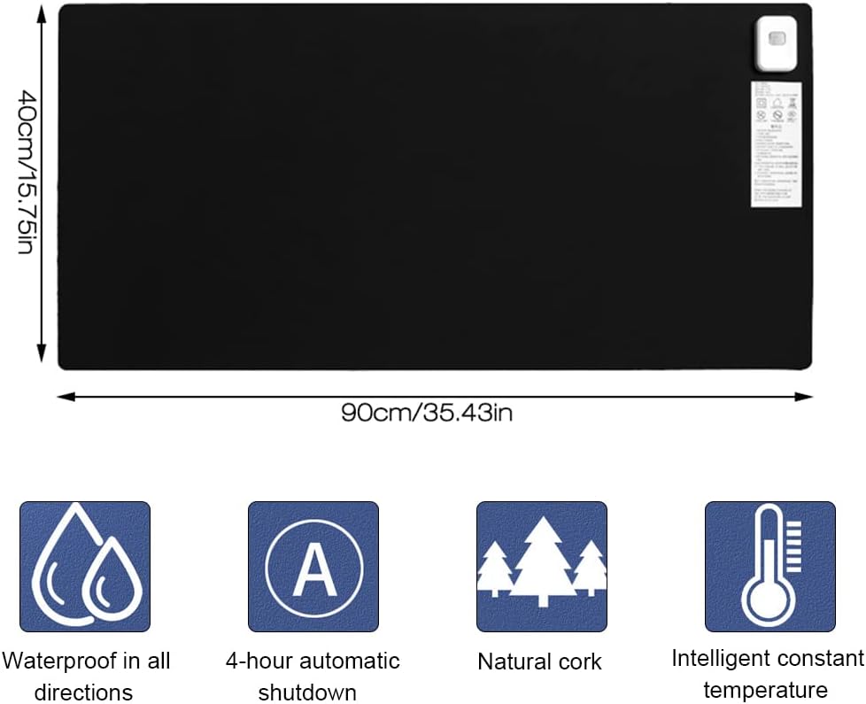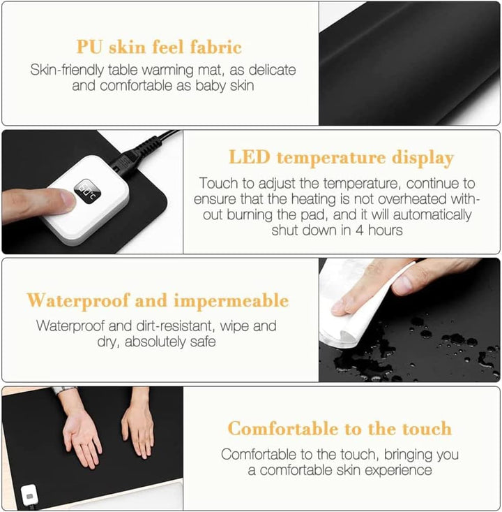 - Automatisches Herunterfahren - Das beheizbare tischunterlage verfügt über eine humanisierte, intelligente Temperaturregelung und LED-Temperaturanzeige, abzüglich der mechanischen Tasten, Sie können die gewünschte Temperatur von 35 °C bis 65 °C mit