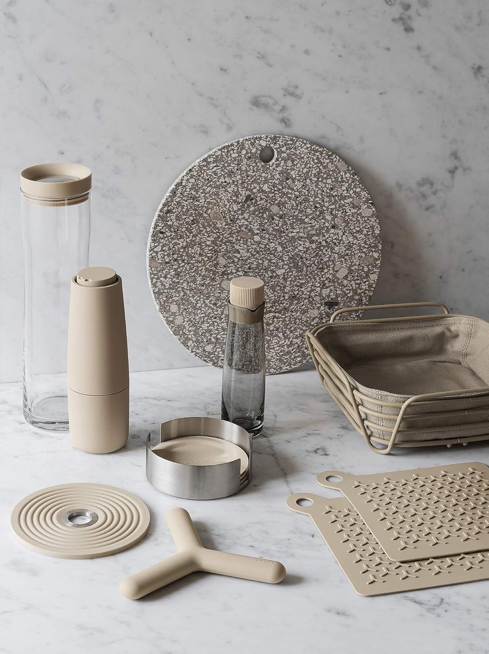 - Lieferumfang & Details: (Höhe 4 cm, Breite 11,2 cm, Tiefe 11,2 cm) Farbe Sharkskin, 6 Silikon-Untersetzer inkl. stilvoller Edelstahlhalterung