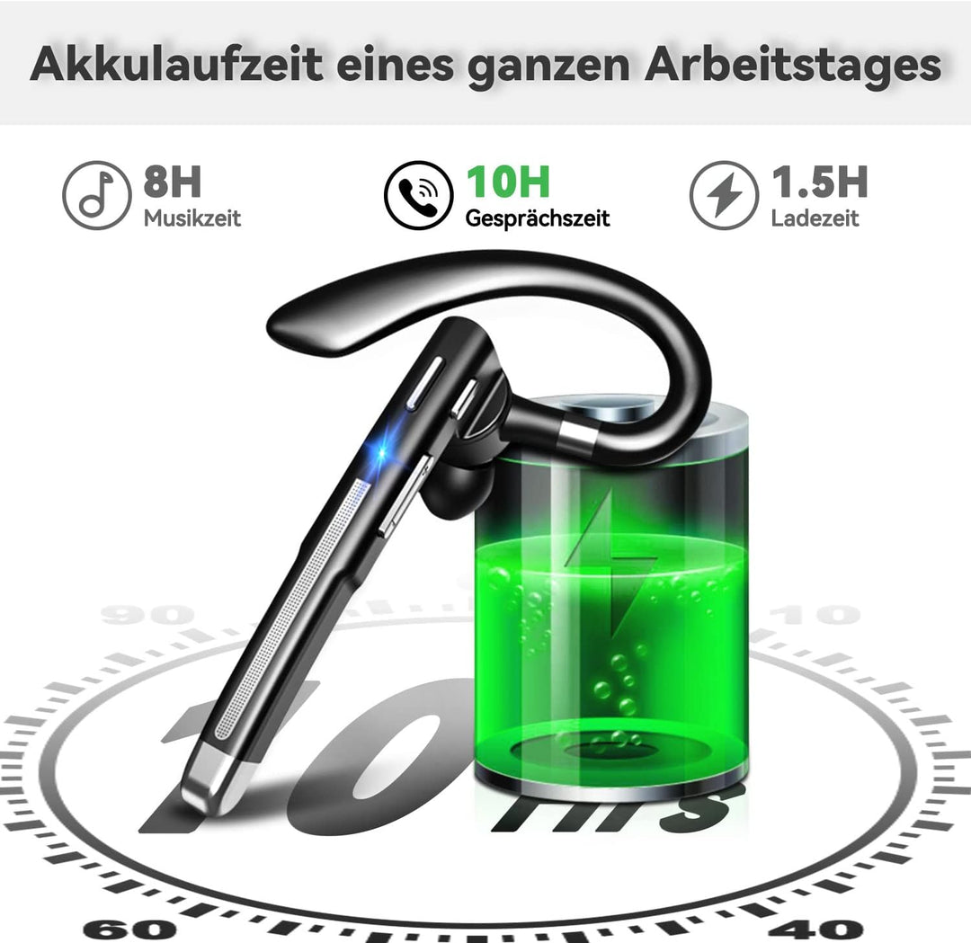 - In Ear Comfortable Wearing Design: In Ohr entworfen kann in linken/rechten Ohr bequemer passen. Der flexible Ohrbügel kann um 180° vertikal und 360° horizontal gedreht werden und sorgt so für einen bequemen Sitz. Dies handy headset bluetooth ist