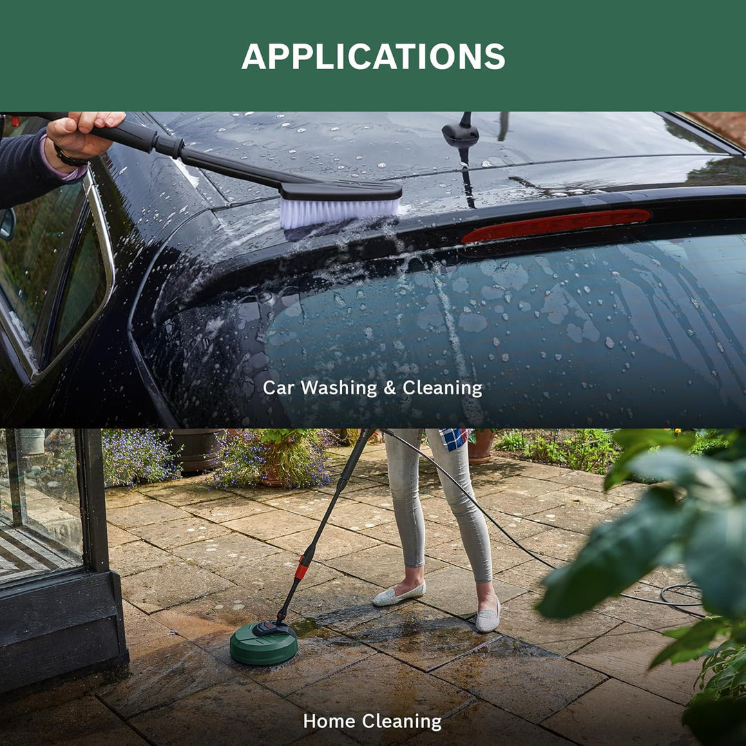 - Einstellbare Niederdruckbürste mit weichen Borsten lässt sich einfach an der Pistole befestigen und mit einem Druck von bis zu 135 bar verwenden