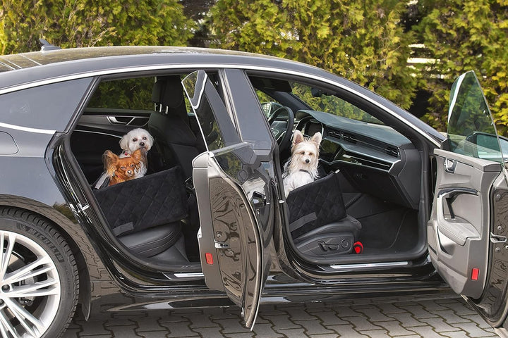 - 🐶 SICHERES REISEN: Einfache und schnelle Montage auf dem Beifahrer- oder Rücksitz mit dem Sicherheitsgurt des Autos und einem verstellbaren Gurt um die Autositzes. Im Inneren befindet sich zwei Leine (mit Karabinerhaken).