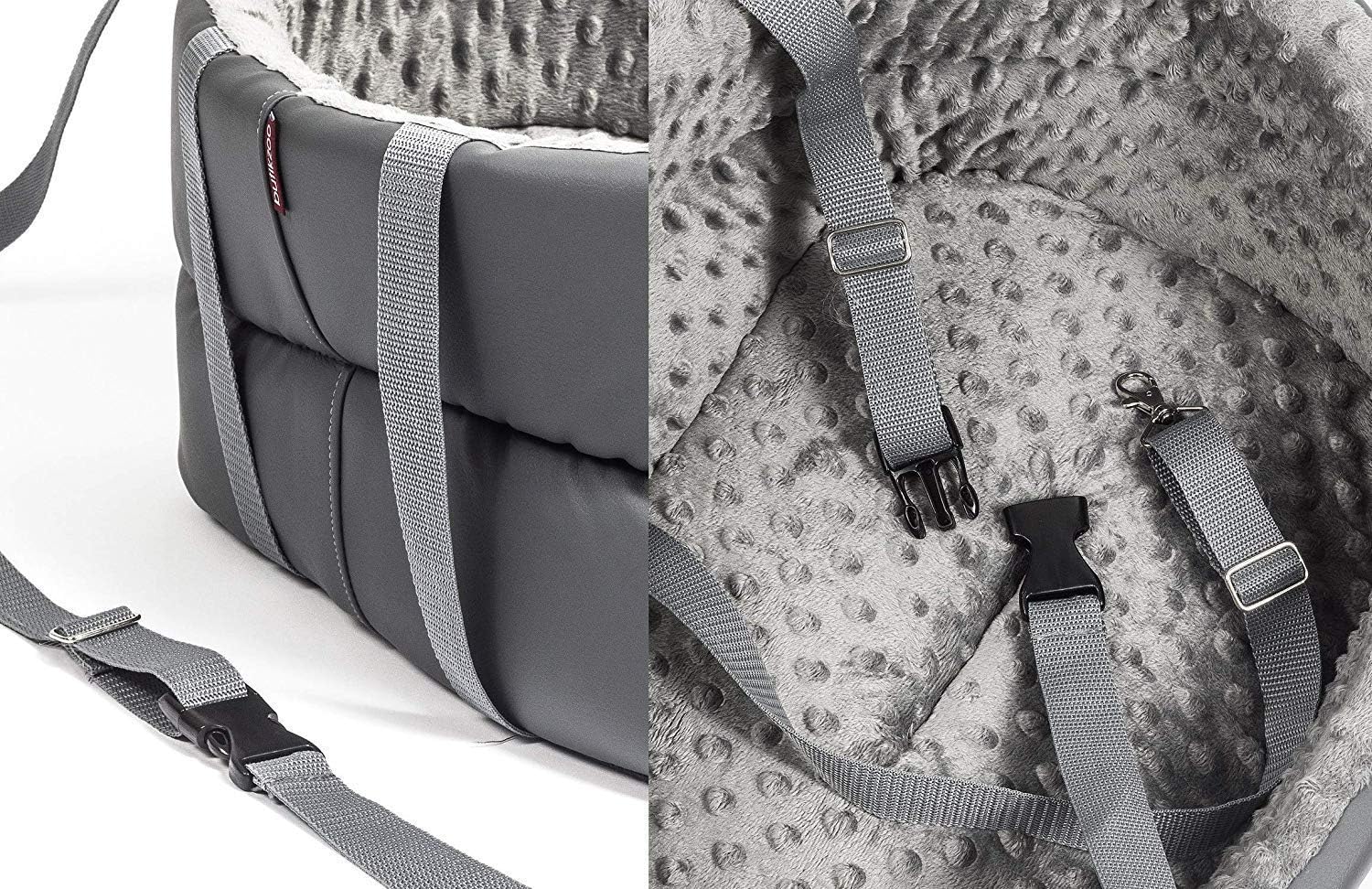- 💺 SICHERES REISEN: Einfache und schnelle Montage auf dem Beifahrer- oder Rücksitz mit dem Sicherheitsgurt des Autos und einem verstellbaren Gurt um die Kopfstütze des Autositzes. Im Inneren befindet sich eine Leine (mit Karabinerhaken).