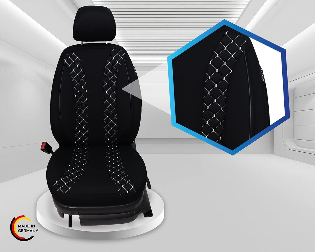 • Merkmale - Mass Anfertigung für Fahrer und Beifahrer, Passend auch für Aktivkopfstützen (nicht abnehmbare Kopfstützen), Fertigung Made in Germany