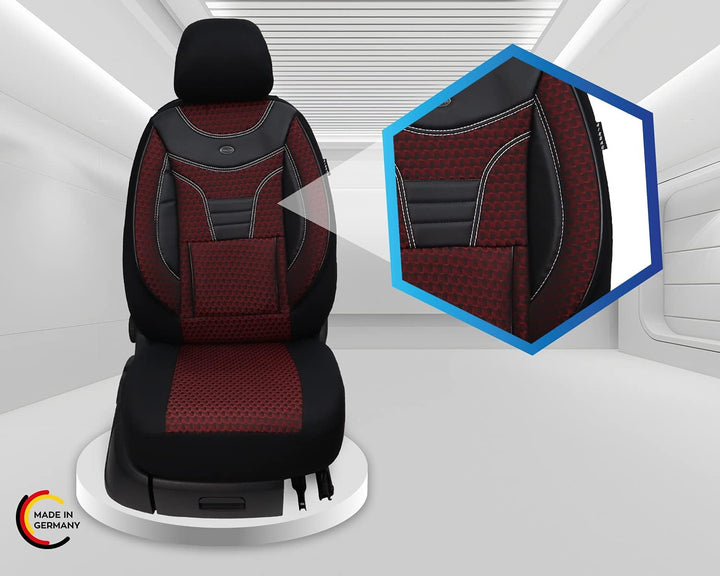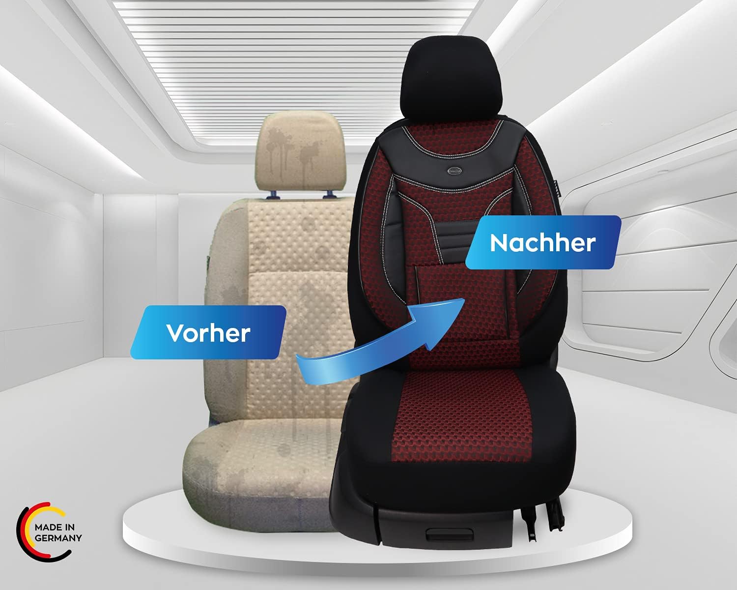 - Merkmale - Mass Anfertigung für Fahrer und Beifahrer, Passend auch für Aktivkopfstützen (nicht abnehmbare Kopfstützen), Fertigung Made in Germany