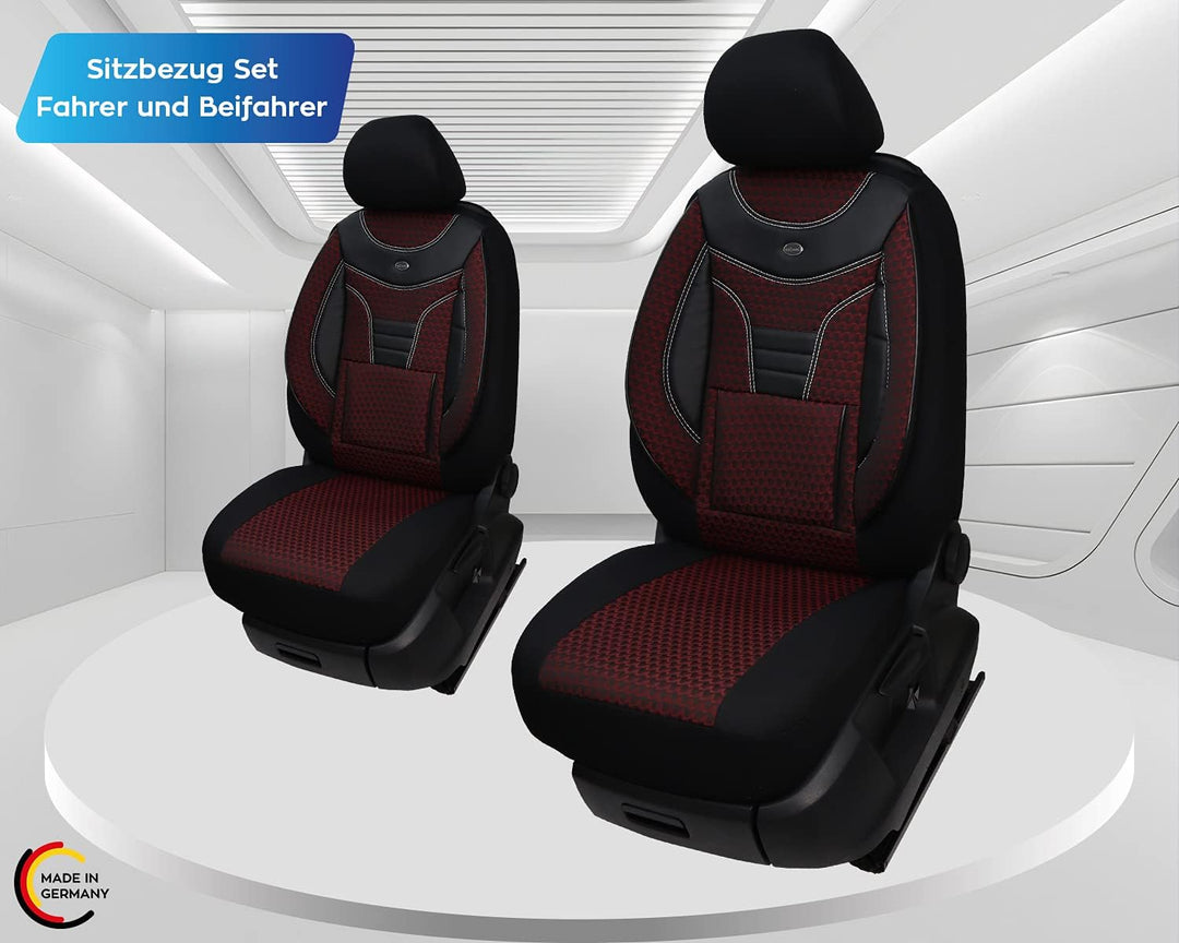 - Lieferumfang - 2x Sitzfläche, 1x Rückenlehne für Fahrer, 1x Rückenlehne für Beifahrer, 2x Kopfstützenbezüge, Klammer/Haken, Montageanleitung