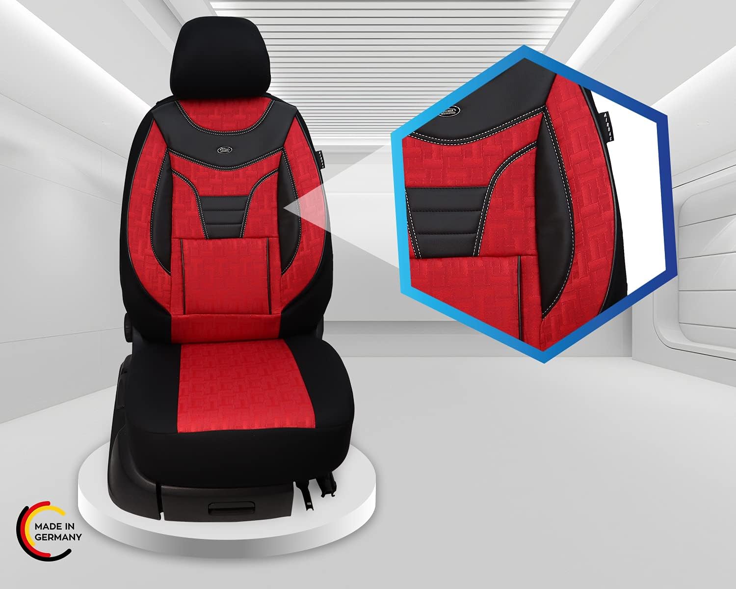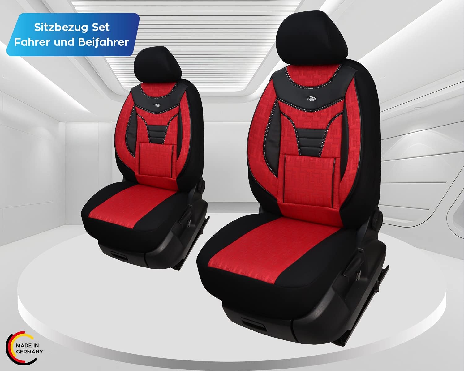 - Merkmale - Mass Anfertigung für Fahrer und Beifahrer, Passend auch für Aktivkopfstützen (nicht abnehmbare Kopfstützen), Fertigung Made in Germany