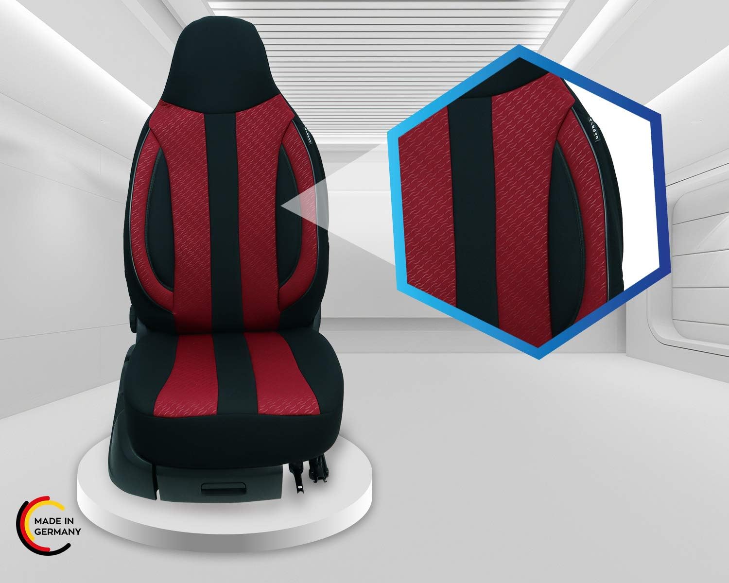 - Merkmale - Mass Anfertigung für Fahrer und Beifahrer, Passend auch für Aktivkopfstützen (nicht abnehmbare Kopfstützen), Fertigung Made in Germany