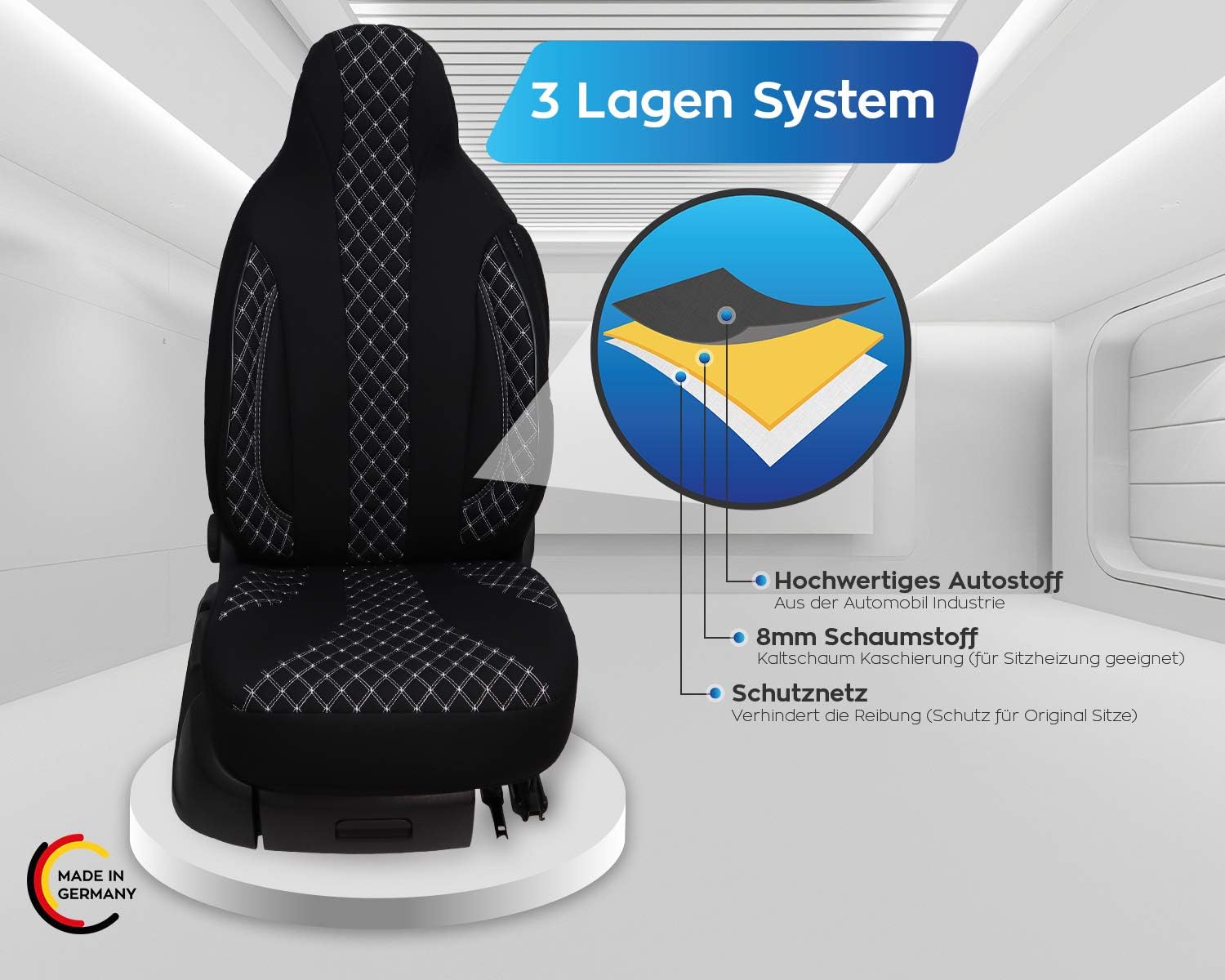 • MERKMALE - Mass Anfertigung für Fahrer und Beifahrer, Passend auch für Aktivkopfstützen (nicht abnehmbare Kopfstützen), Fertigung Made in Germany