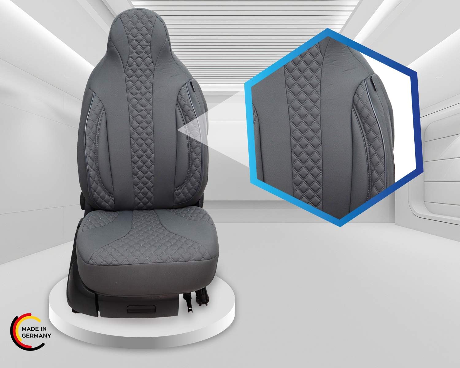 - MERKMALE - Mass Anfertigung für Fahrer und Beifahrer, Passend auch für Aktivkopfstützen (nicht abnehmbare Kopfstützen), Fertigung Made in Germany
