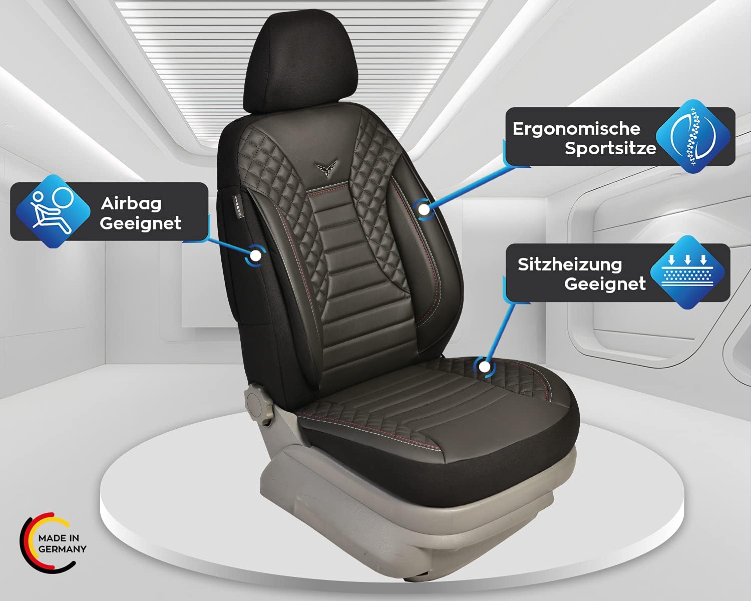 • MERKMALE - Mass Anfertigung für Fahrer und Beifahrer, Passend auch für Aktivkopfstützen (nicht abnehmbare Kopfstützen), Fertigung Made in Germany