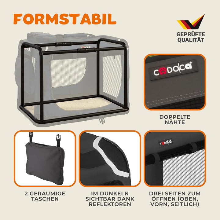 - VIELSEITIG EINSETZBAR - Die faltbare CADOCA Tiertransportbox eignet sich ideal für Reisen oder Tierarztbesuche mit deiner Fellnase. Sie bietet eine sichere Unterkunft für dein Haustier und lässt sich ohne Werkzeug leicht und platzsparend verstauen.