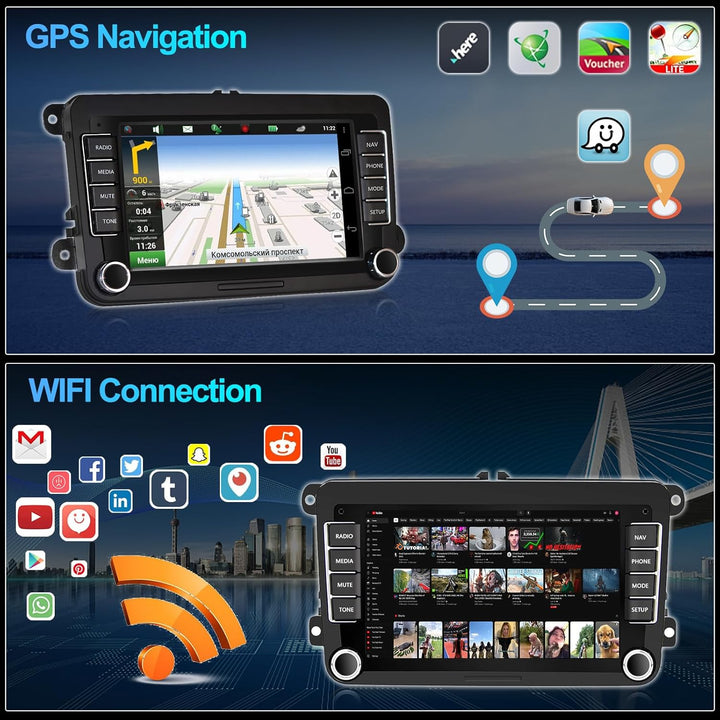 - đă Radio mit Navi fĂŒr VWăDas Autoradio mit Navi-UnterstĂŒtzung verbindet sich mit WiFi oder Handy-Hotspot, nach der Verbindung können Sie die Online-GPS-Navigation verwenden und Android-Apps wie YouTube / Facebook herunterladen. Laden Sie die