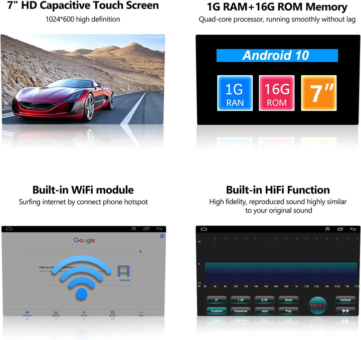 - 🚙【Android 10 Autoradio 】 Mit leistungsstarkem Android 10 System, 1G Ram+16G Rom, können Sie eine reibungslose und reaktionsschnelle Benutzererfahrung geniessen. Riesiges 7 Zoll IPS 1080P Manual Flit Out Single Din Display bietet Ihnen lebensechte