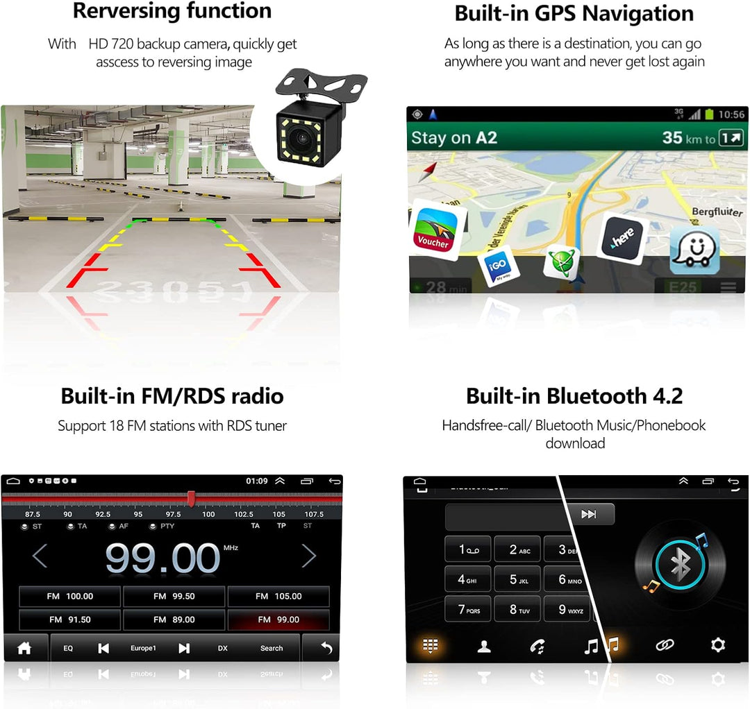 - 🚗【Super praktische Funktionen】①Rückfahrhilfe: Sie können die Rückfahrkamera anschliessen (im Lieferumfang enthalten), die Rückfahrkamera kann Ihnen die Unterstützung bieten. ②Mirror Link: Es ist geeignet für Android 4.0-10.0 und iOS 15.0