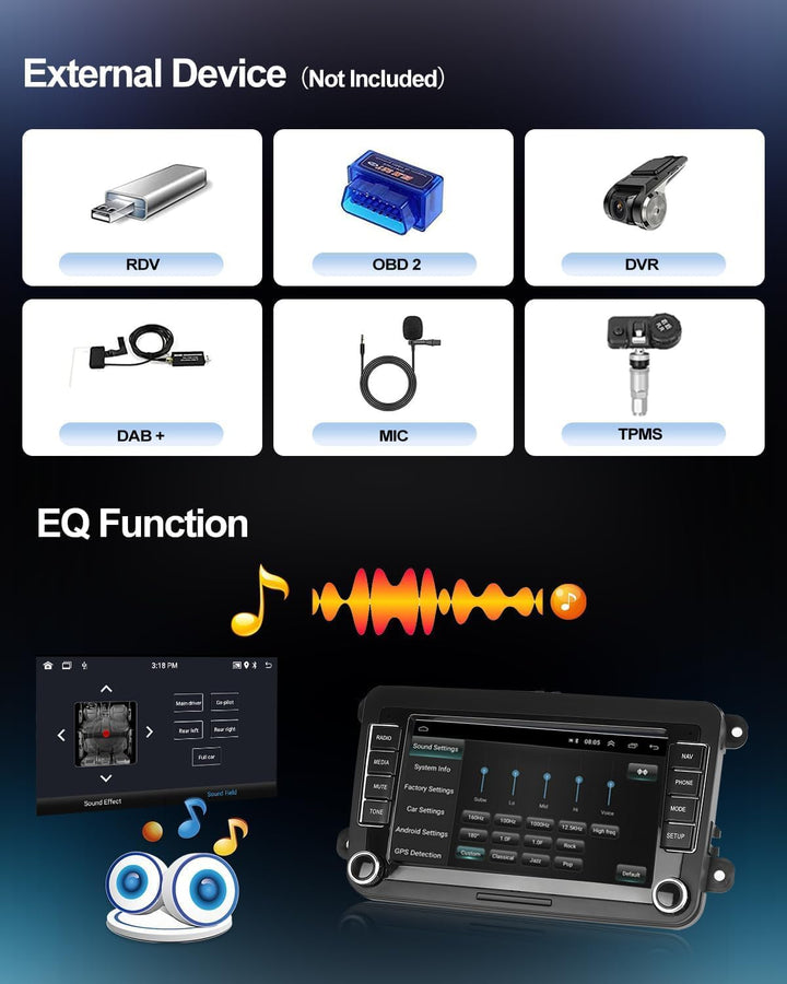 - đ ă Subwoofer Output&EQ Einstellungenă UnterstĂŒtzt Subwoofer-Ausgang, unterstĂŒtzt EQ-Einstellungen mit 15-Band-Grafik-Equalizer. Bauen Sie in Pop, Rock, Jazz, Klassik, Flat, Benutzer, Stimme, Sound Delay. Mit mehreren Anpassungsoptionen können Sie das Audioerlebnis nach Ihren WĂŒnschen anpassen.