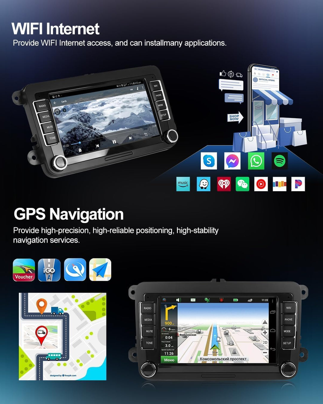 - đ ă GPS Navigation, WiFiă Integrierter GPS-EmpfĂ€nger, UnterstĂŒtzung Online- und Offline-Karte, helfen Ihnen, bequem zu navigieren. In der Armaturenbrett-GPS-Haupteinheit verbinden Sie sich einfach mit WLAN oder Hotspot, dann können Sie im Internet surfen und es ermöglicht Ihnen, jede Anwendung wie GPS-Karten, YouTube, TikTok, Spotify usw. zu verwenden