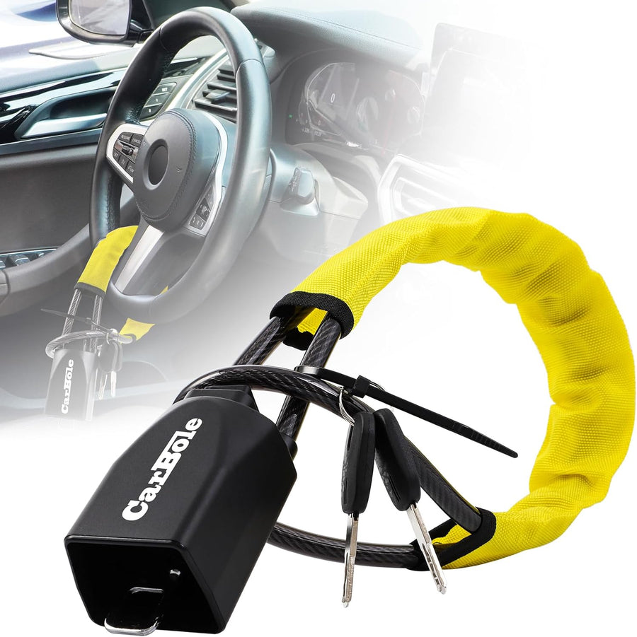 - 【Hochwertige Materialien】Das Stahldrahtseil innerhalb des Lenkradschlosses hat eine ausgezeichnete Schnittfestigkeit,und das innere Stahldrahtseil ist gewebt und mit kratzfestem Material bedeckt,das das Lenkradschloss effektiv schützen kann
