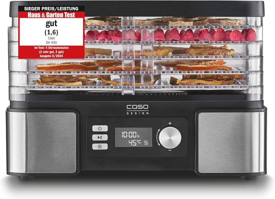 - Viel Platz dank 5 stapelbarer, höhenverstellbarer Ebenen. Leckere Kreationen selbstgemacht, z.B. Obst-, Gemüse- und Kartoffelchips, Fruchtleder, Beef Jerky, Müsliriegel, Granola, Tee, Leckerlies für Katzen / Hunde etc.