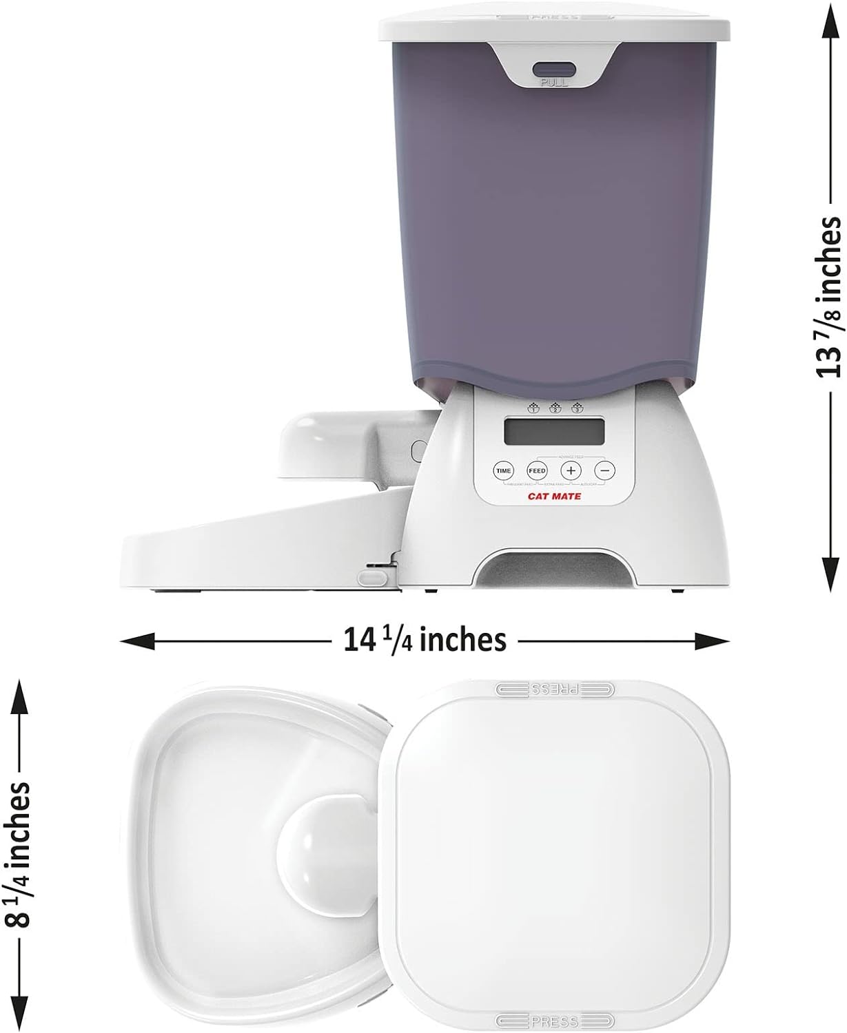- einzigartiger Füttermechanismus gewährleistet genaue und gleichbleibende Portionsgrössen von 1 g (2 Teelöffel) und mehr - für alle allgemein erhältlichen Trockenfuttermittel für Katzen bzw. kleine Hunde