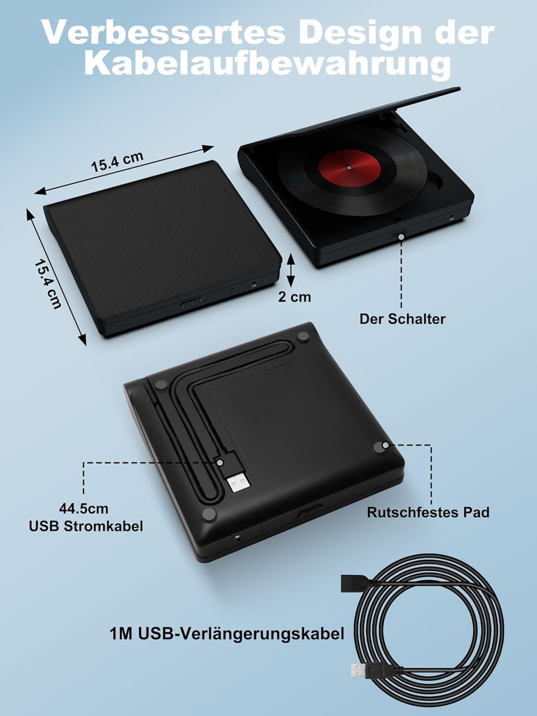 - Verbesserte Kabelaufbewahrungsdesign: Das CD Laufwerk Extern usb für das Auto verfügt über eine Kabelaufbewahrung an der Rückseite. Wenn Sie es nicht benutzen, können Sie das Kabel in die Rille einfach legen, sodass Sie sich keine Sorgen machen