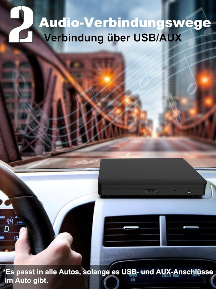 - Speziell für Auto: Lehwey externe CD Laufwerk ist perfekt für das Auto ohne CD-Player. Keine zusätzlichen Adapter erforderlich, kompatibel mit den meisten Autos auf dem Markt, solange Ihr Auto einen USB- oder AUX-Anschluss hat. Ihre Lieblings-CDs im