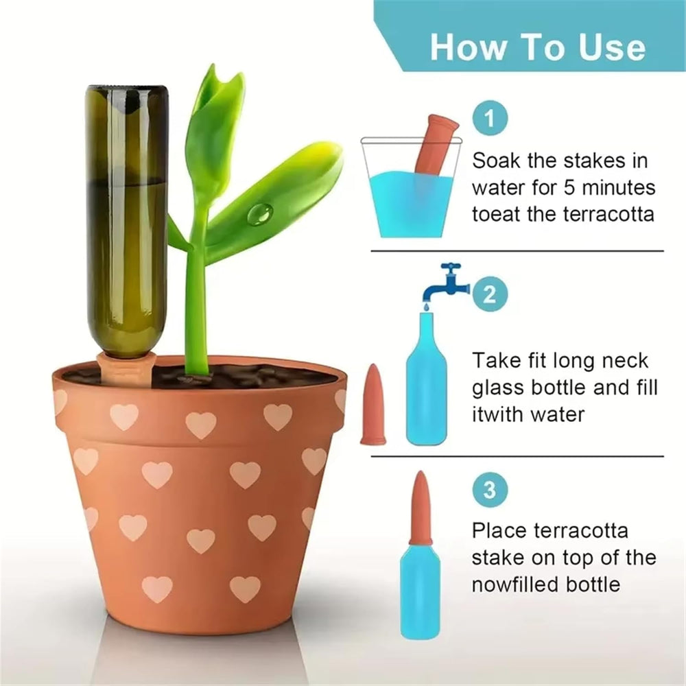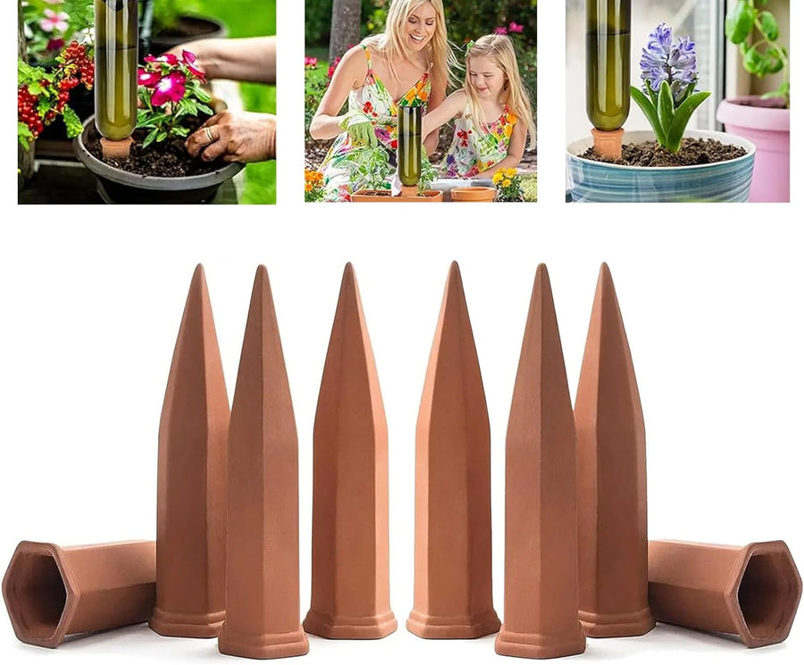 - 【Hochwertiger Ton】Terrakotta-Giessspitzen bestehen aus hochwertigem Ton, der eine gute Durchlässigkeit und Wetterbeständigkeit aufweist. Wenn die Pflanzentränken umgedreht sind, verhindert das poröse Material das Auslaufen von Wasser aus der