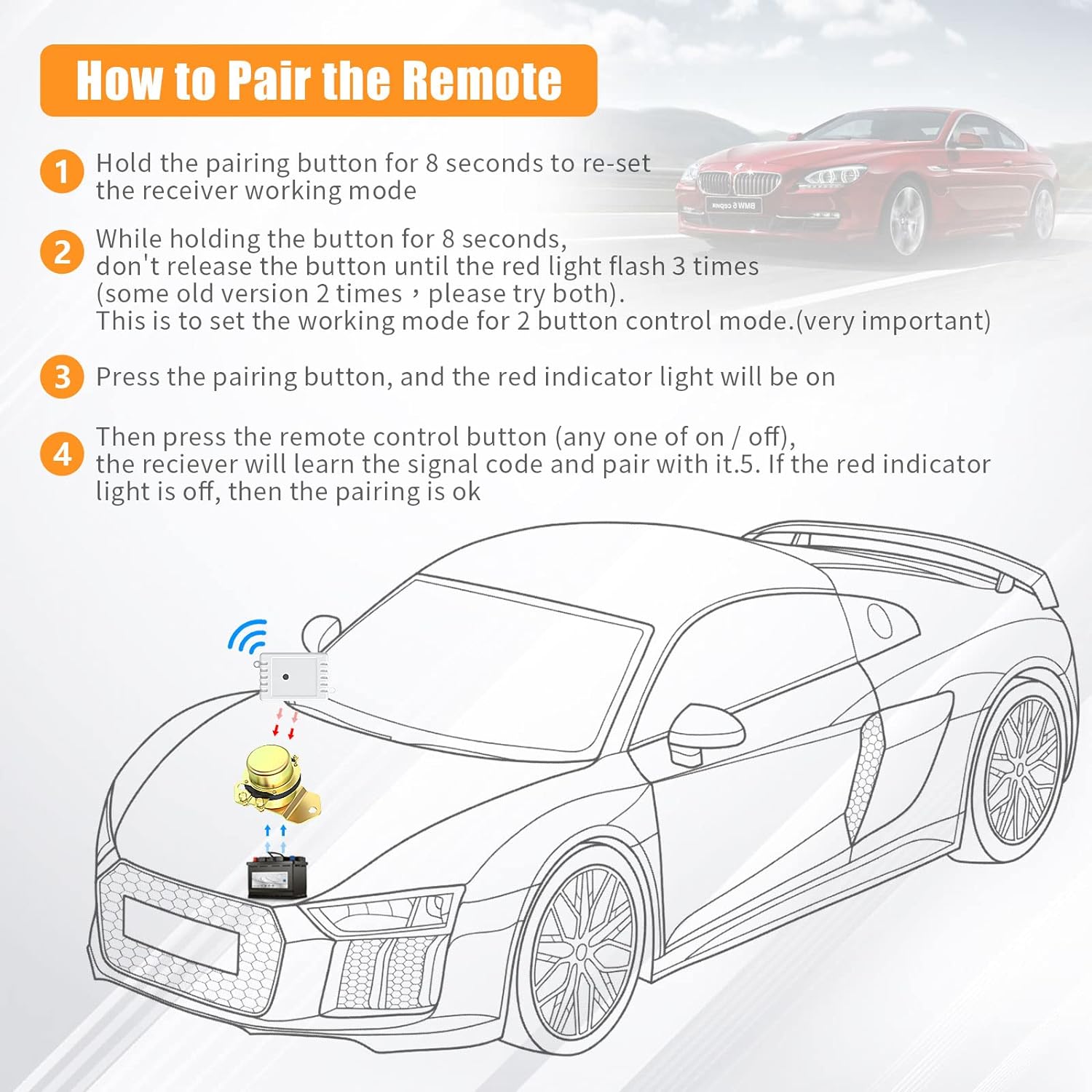 - [Langstrecken- und geringer Stromverbrauch] Mit der coolen silbernen Fernbedienung mit einem Arbeitsabstand von bis zu 160 Fuss können Sie die Fernbedienung auch in Ihrem Haus steuern. Universell für 12V DC Fahrzeuge oder andere