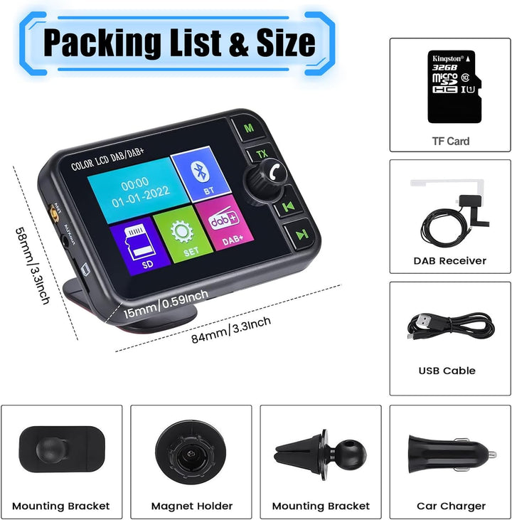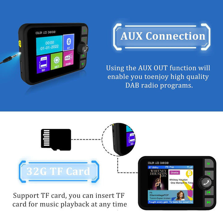 - 【Breiter Umfang】 Durch die Verwendung der UKW-Übertragung für die Tonausgabe können Sie DAB+-Radio auch dann geniessen, wenn Ihr Autoradio nicht über die DAB+-Funktion verfügt.