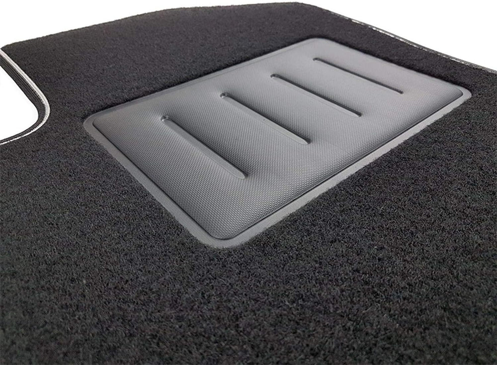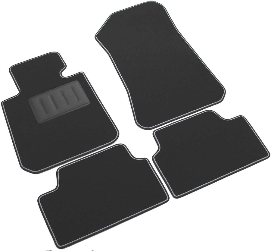 - Passgenaue schwarze Fussmatten aus hochwertigem Nadelfilz, rutschfest-gummierte Unterseite, Rand aus zweifarbigem Stoff, schwarz mit hellgrauer Linie, die die Form und den sportlich eleganten Charakter unterstreicht, mit Antirutsch-Applikationen auf der