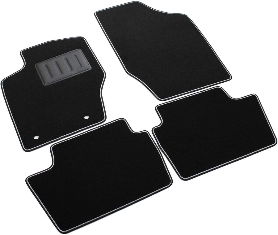 - Bordüre aus zweifarbigem Stoff in schwarz mit hellgrauem Streifen, rutschfeste Oberfläche auf der gesamten Fläche aller Fussmatten des Autosets.