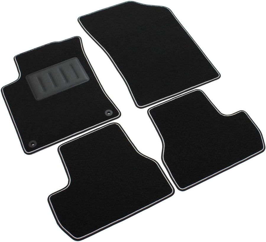 - Bordüre aus zweifarbigem Stoff in Schwarz mit hellgrauer Linie, ausgestattet mit einem rutschfesten Riemen auf dem gesamten Umfang der Matte und allen Teilen, die das Set Ihres Autos formen