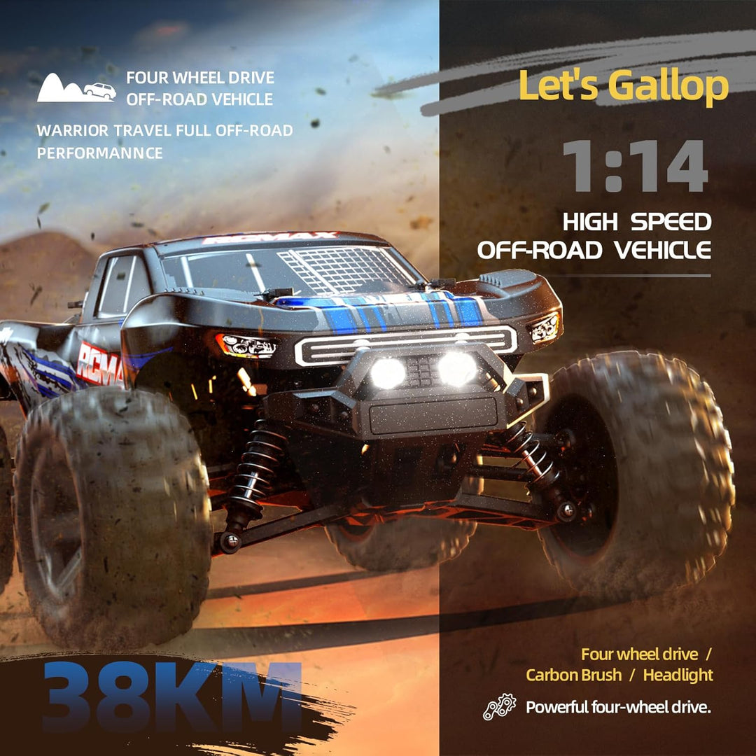 - “ALL-TERRAIN CONQUEROR – Der ultimative Speedster” Highspeed-Remote-Control-Fahrzeug mit RS 390 starkem Elektromotor + effizientem Getriebe-System, bis zu 38 km/h Höchstgeschwindigkeit. Das 1:14-Modell verbindet detailgenaue Präzision mit