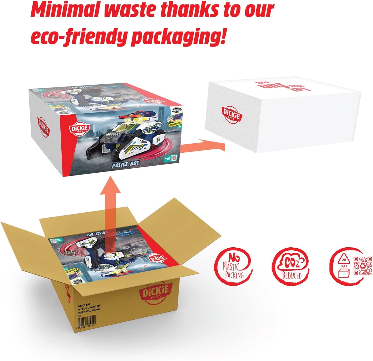 - 2 in 1 Polizei-Transformator- Mit einem schnellen Handgriff wächst das spannungsgeladene Polizeifahrzeug auf eine Höhe von 28,5 cm heran und verwandelt sich in einen eindrucksvollen Polizei-Roboter!
