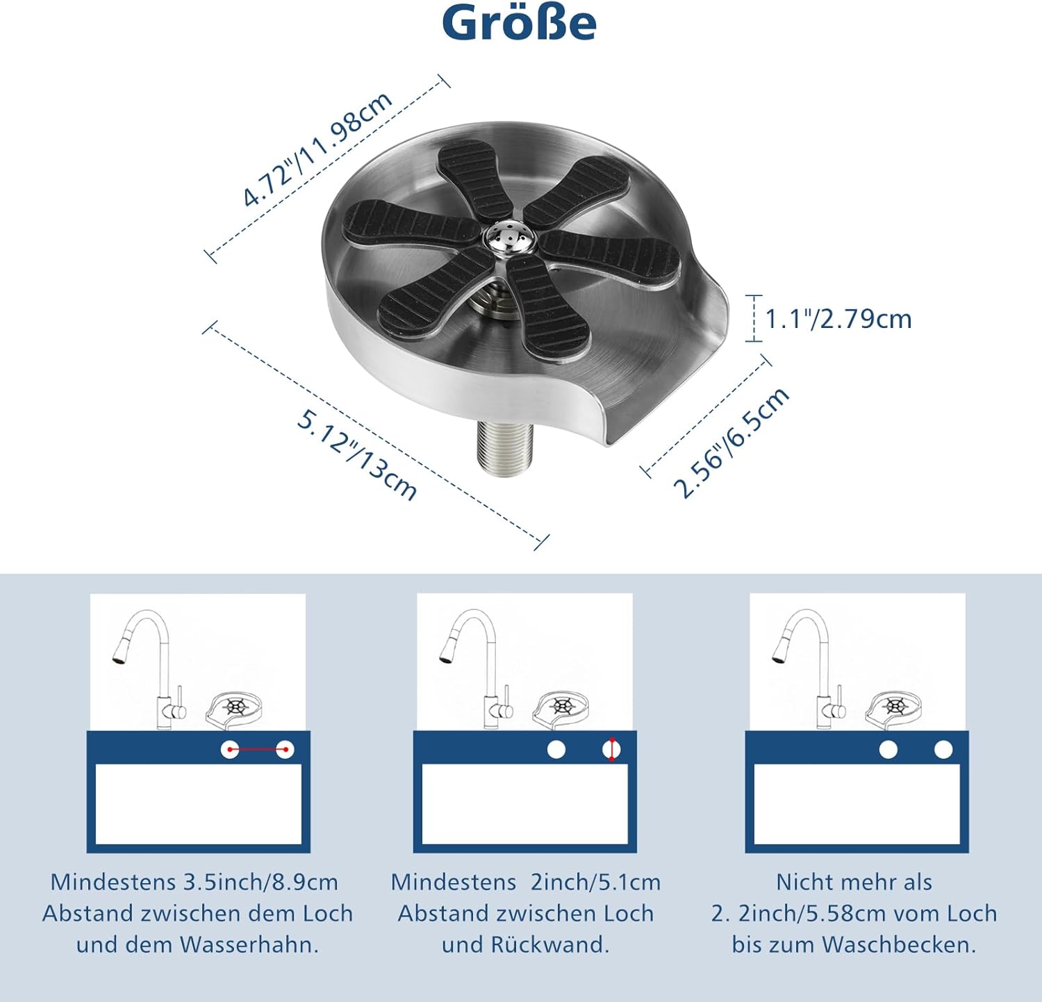 - 💖Hochwertiges Material💖: Die Automatische Tassenreiniger besteht aus Edelstahl 304. Die glasspüler mit leicht geneigtem Winkeldesign leitet das Wasser zum Waschbecken um und sammelt kein verschmutztes Wasser und bildet keine Pfützen. Das