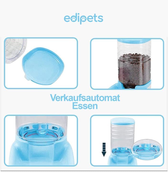 - 🐾 GROSSE KAPAZITÄT: Mit einem Gesamtvolumen von 3,8 l reicht es für kleine Haustiere ca. 7 Tage und für grosse Haustiere über 3 Tage. Dank des edipets-Spenders können Sie mit der Gewissheit zur Arbeit, zu einer Party oder in den Urlaub fahren,