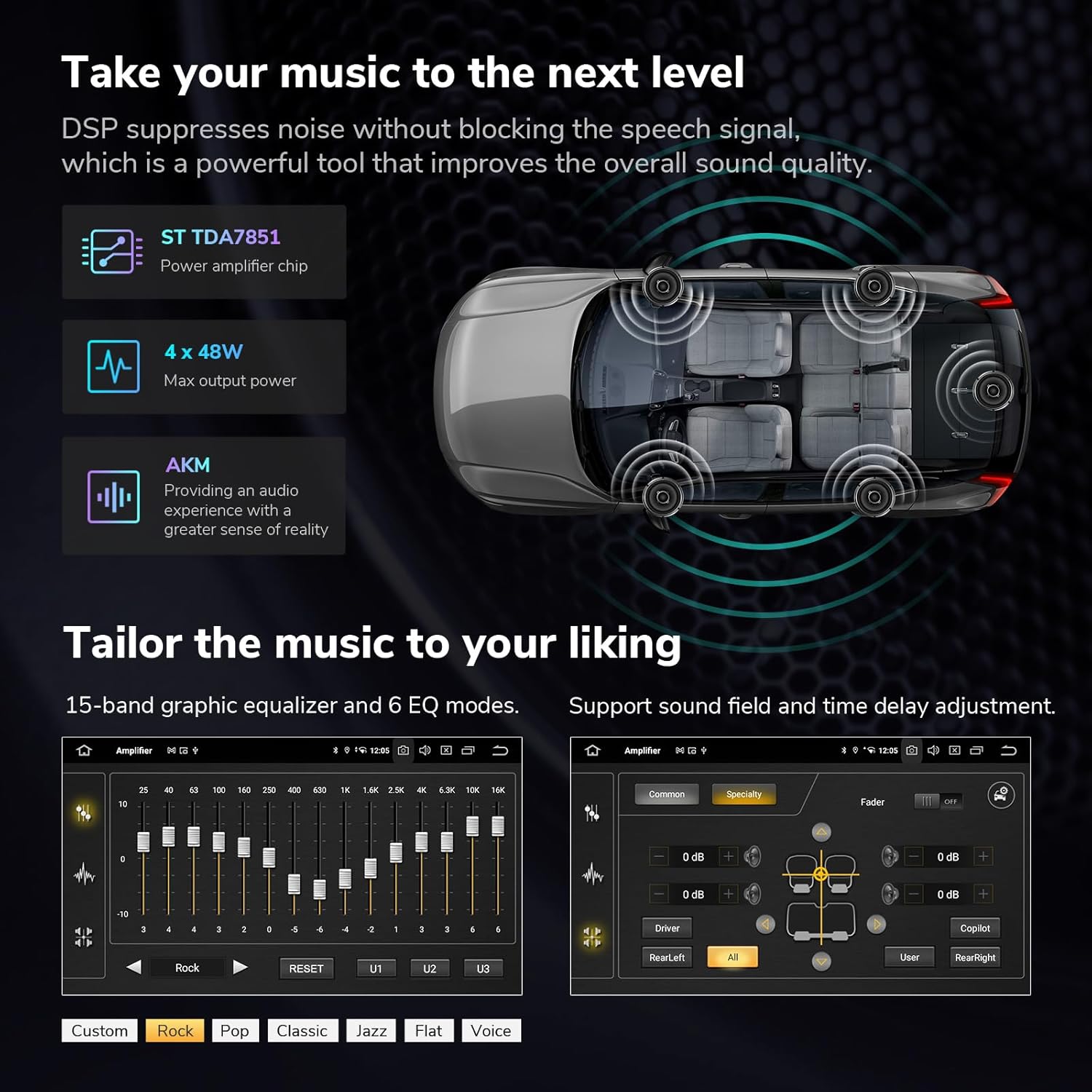 - Professioneller DSP & Bluetooth 5.0❌ Unser Android Radio hat einen eingebauten DSP-Chip AK7604 von AKM mit einem 15-Band-Grafik-Equalizer und 6 EQ-Modi. Er unterstützt Klangfeld- und Verzögerungsanpassung, Sprachentrauschung und mehr. Der