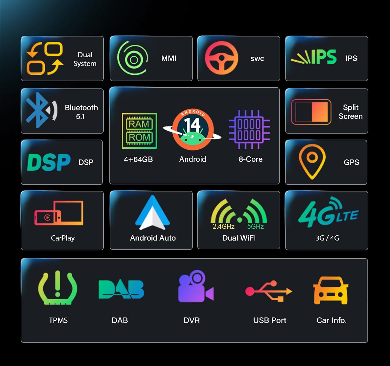 - ✪【Originalsystemfunktionen Beibehalten】Unterstützt Lenkradfernbedienung und MMI-Bedienknopf und -tasten, einfacher Zugriff auf alle Funktionen (wird nach der APK-Installation nicht unterstützt); behält das ursprüngliche HiFi-Soundsystem bei;