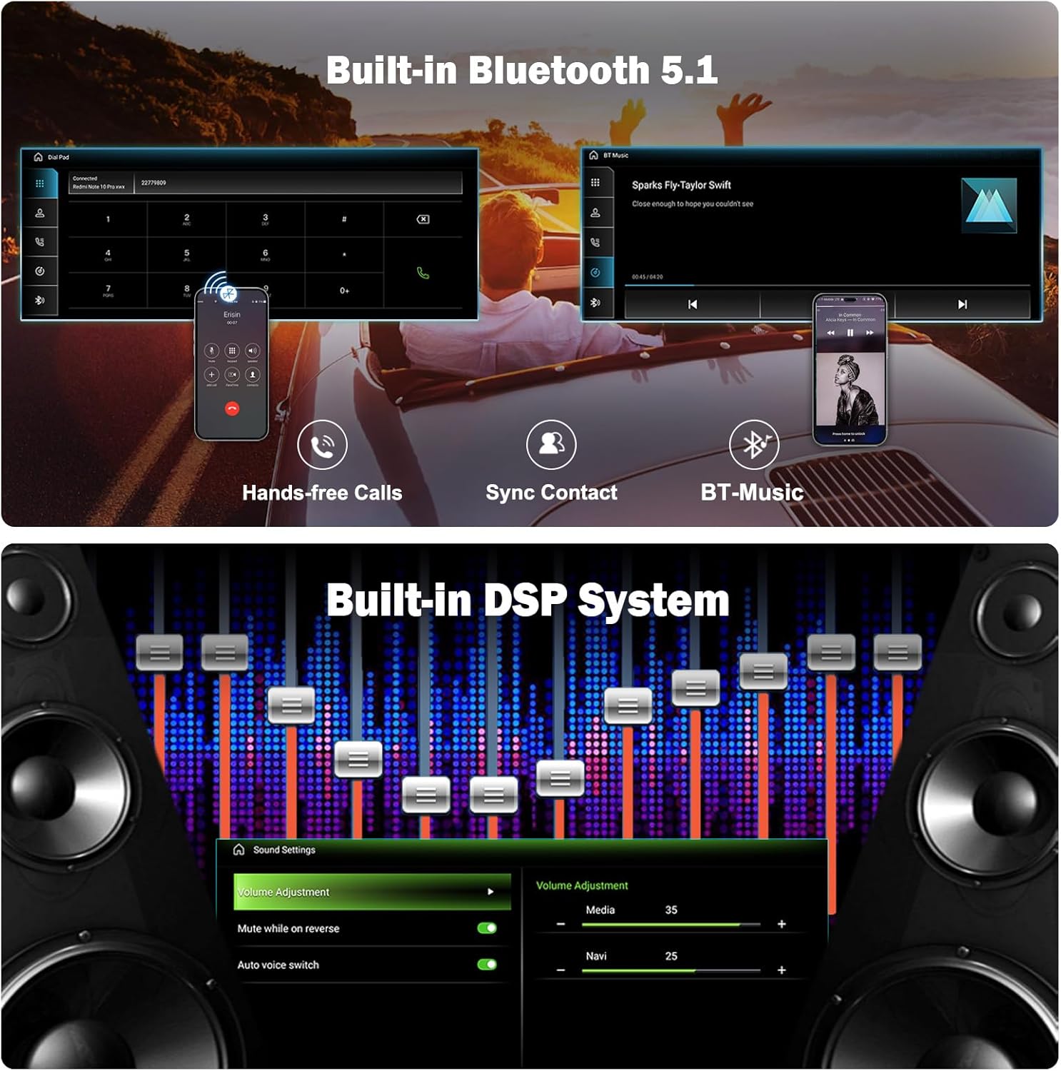 - đăWireless CarPlay & Android Auto & DSP-VerstĂ€rkeră Schliessen Sie einfach ein iPhone (ĂŒber BT) oder ein Android-Smartphone (ĂŒber BT/USB) an dieses Radio an, dann können Sie ganz einfach telefonieren, Nachrichten senden und empfangen, Musik