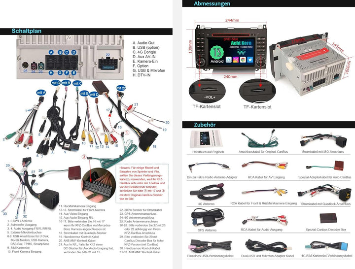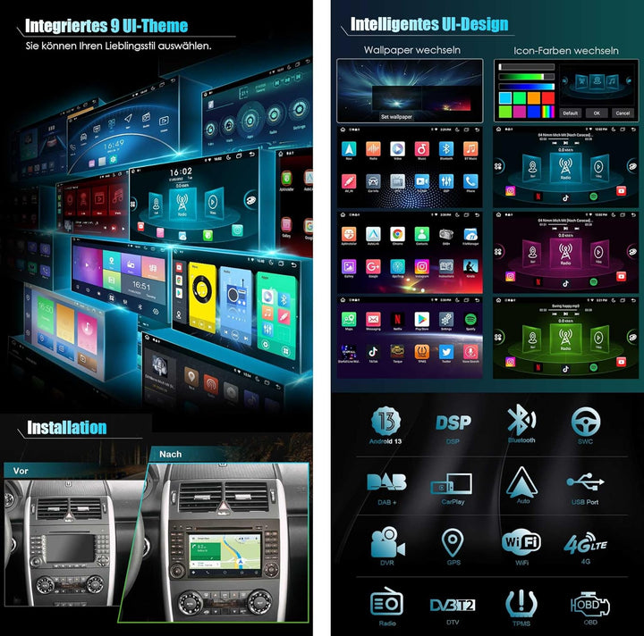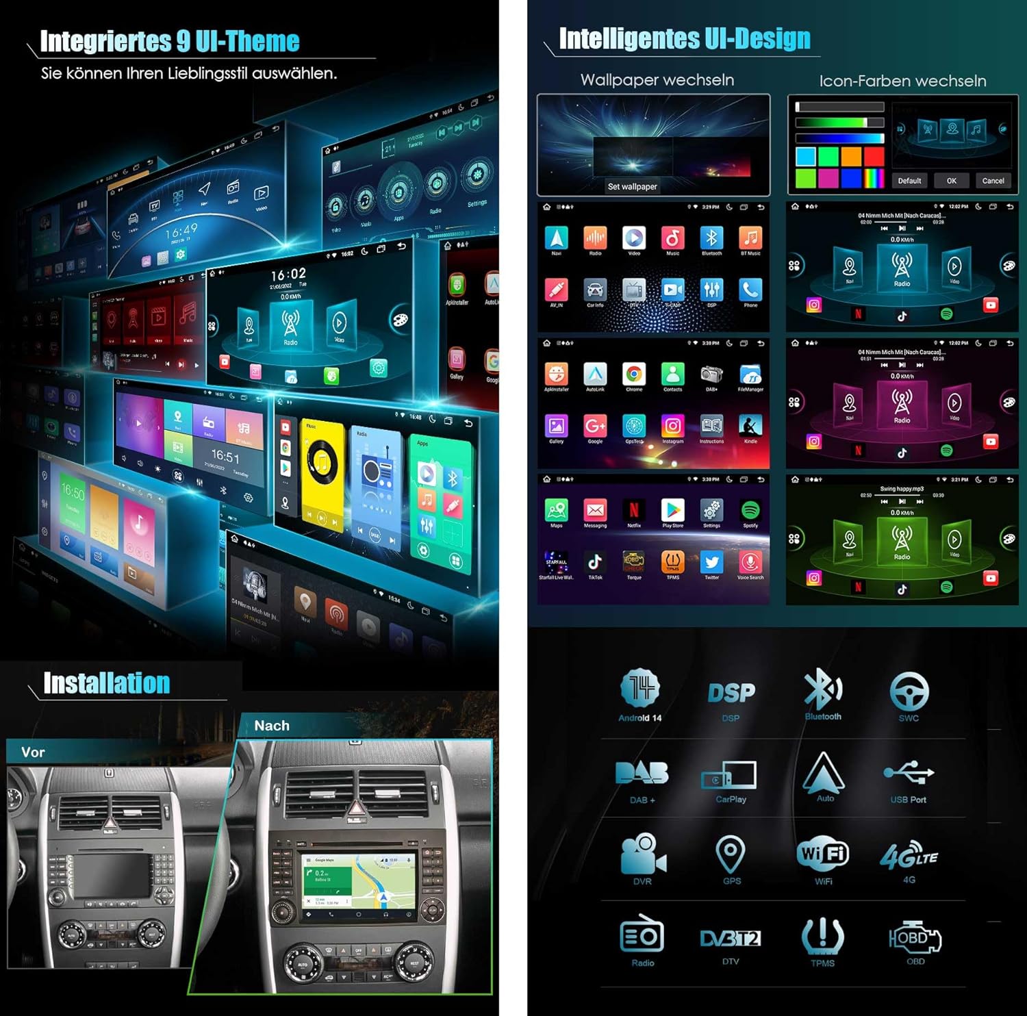 - 🚗【Kompatible Modelle】 Dieses Autoradio mit Bildschirm passt für Mercedes Benz A-Klasse W169 2005–2012, Mercedes Benz B-Klasse W245 2005–2012, Mercedes Benz Sprinter Viano Vito seit 2006, VW Crafter seit 2006.