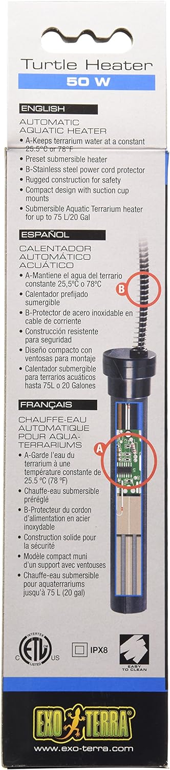 - Voreingestellter, unter Wasser tauchbarer Heizer hält das Wasser in Terrarien um 25°C