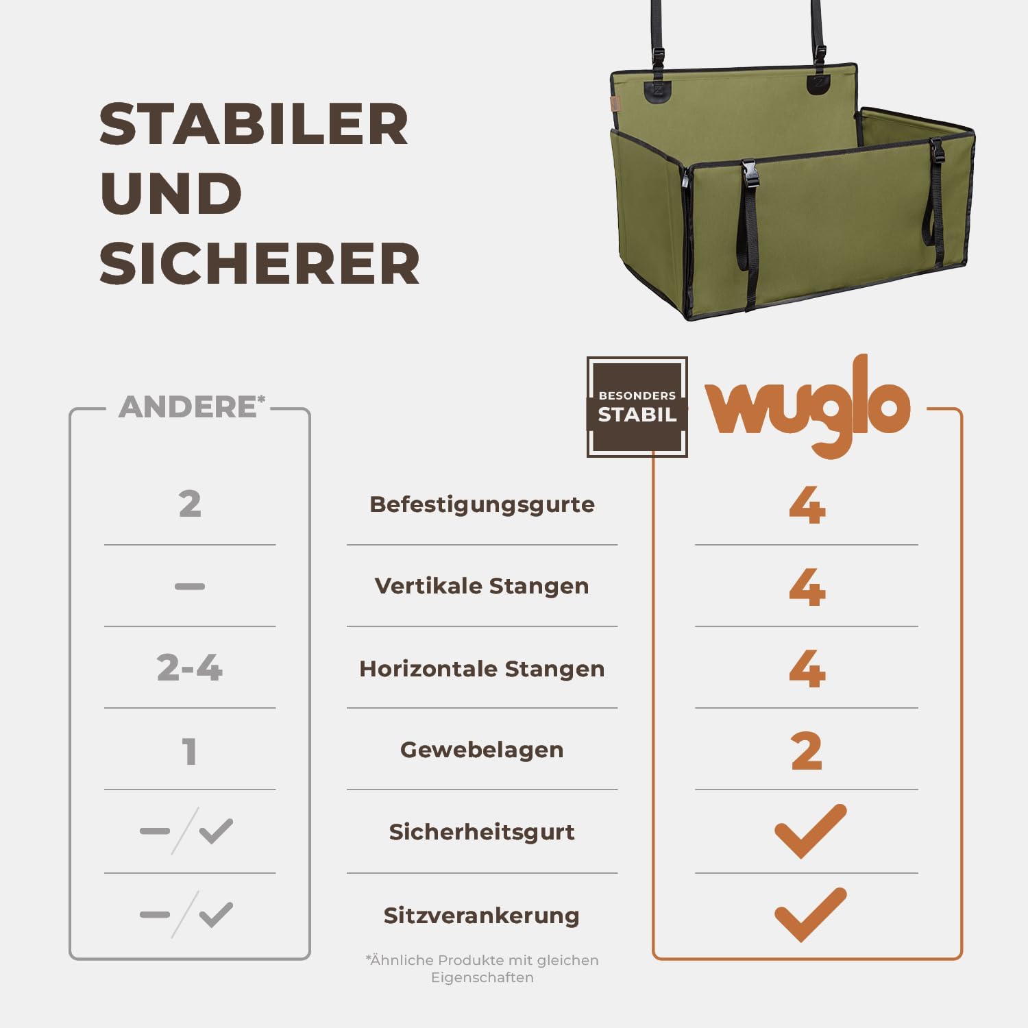 - SCHNELL EINSATZBEREIT - Durch die schnelle und einfache Montage ist der Wuglo Hunde Sitz in wenigen Augenblicken befestigt. Die Bauweise erlaubt es, den Sitz bequem auf dem Rücksitz zu befestigen und die Stäbe lassen sich leicht entfernen!