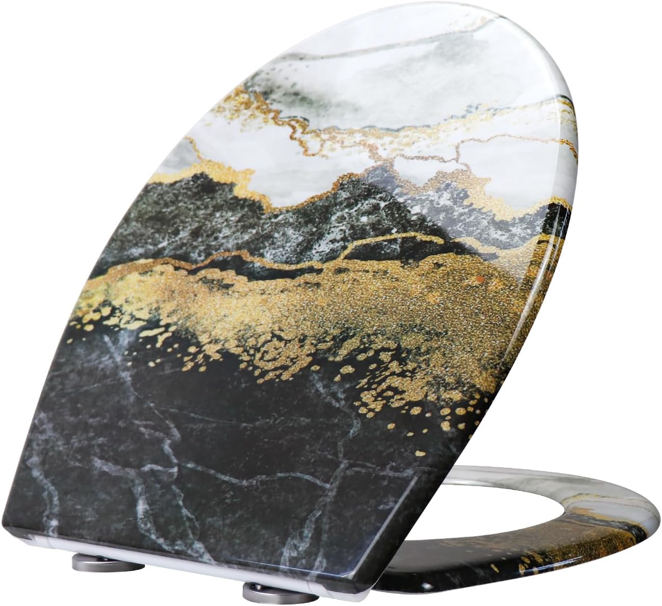 - Toilettenbrille aus Duroplast: Hochwertiges Material, Oberfläche malt mit verschiedenen Mustern zur Auswahl. Hochwertiges Druckverfahren, das Muster kann für eine lange Zeit ohne Kratzer verwendet werden.